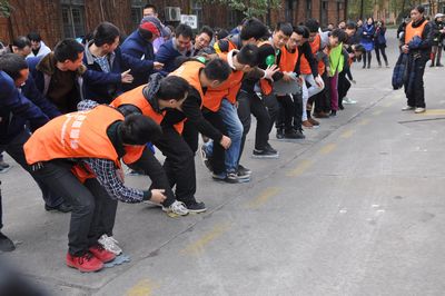 廠慶大會(huì)結(jié)束后,在專業(yè)拓展訓(xùn)練公司教練的指揮帶領(lǐng)下,公司1200名員工分成12個(gè)訓(xùn)練方陣,每個(gè)方陣又分為A、B、C、D四支隊(duì)伍分別開展訓(xùn)練活動(dòng)。訓(xùn)練項(xiàng)目包括鼓動(dòng)人心、南極浮冰、搶灘登陸、我們是最棒的團(tuán)隊(duì)和團(tuán)隊(duì)動(dòng)力圈,其中前三項(xiàng)是小組任務(wù),第四項(xiàng)是團(tuán)隊(duì)任務(wù),最后一項(xiàng)是集體任務(wù)。所有項(xiàng)目都是依靠集體的力量和協(xié)調(diào)才能完成,這也是拓展訓(xùn)練所要達(dá)到的目的。尤其是團(tuán)隊(duì)動(dòng)力圈項(xiàng)目,1000多名員工圍成幾個(gè)同心圓,場面宏大,充分展示了團(tuán)隊(duì)的力量。