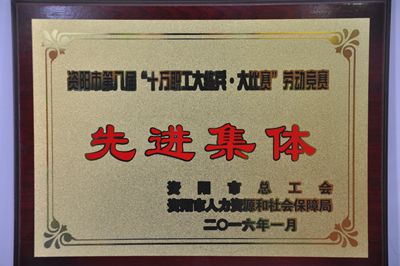 (集團(tuán))公司被資陽(yáng)市總工會(huì)、資陽(yáng)市人力資源和社會(huì)保障局授予資陽(yáng)市第八屆“十萬(wàn)職工大練兵、大比賽”勞動(dòng)競(jìng)賽“先進(jìn)集體榮譽(yù)。