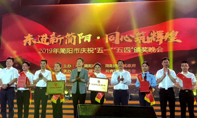 4月29日晚,由中共簡陽市委、市政府主辦,簡陽市總工會、共青團(tuán)簡陽市委承辦的以“東進(jìn)新簡陽·同心筑輝煌”——2019年簡陽市慶祝“五一”“五四”頒獎晚會在簡陽市體育館舉行。晚會表彰了簡陽市工會及共青團(tuán)工作的先進(jìn)集體和先進(jìn)個人,簡陽市各單位、行業(yè)、地方代表近千人出席。