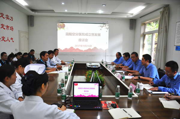 2019年9月26日,簡(jiǎn)陽(yáng)空分醫(yī)院成立暨發(fā)展座談會(huì)在我院會(huì)議室舉行,川空集團(tuán)公司副總經(jīng)理謝波主持座談會(huì),川空集團(tuán)公司董事、副總經(jīng)理,醫(yī)院董事長(zhǎng)單凱出席座談會(huì)并發(fā)表講話,川空集團(tuán)公司領(lǐng)導(dǎo),醫(yī)院領(lǐng)導(dǎo)班子,職能部門負(fù)責(zé)人,部分臨床科室代表參加了座談會(huì)。