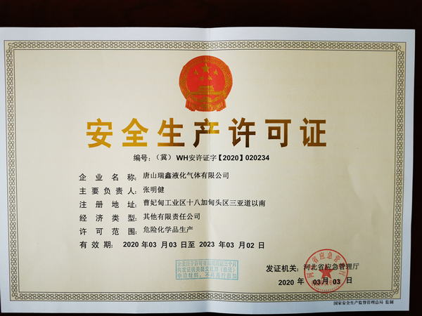 在完善安全生產(chǎn)各項管理措施、打牢安全生產(chǎn)基礎(chǔ)工作的同時,瑞鑫公司在(集團)公司和氣體部的指導(dǎo)下,經(jīng)過公司全體員工的共同努力,圓滿完成了安全生產(chǎn)許可證的延期工作,取得了新的安全生產(chǎn)許可證。