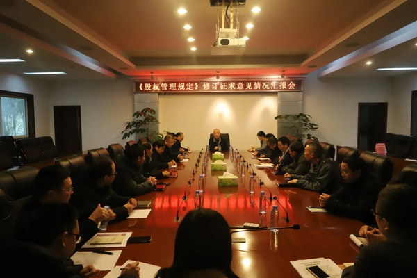 2020年12月1日上午,(集團(tuán))公司召開《股權(quán)管理規(guī)定》(2019版)修訂征求意見情況匯報(bào)會,會議由(集團(tuán))公司黨委書記、董事長單金銘主持,各黨支部書記,(集團(tuán))公司分管股權(quán)的財(cái)務(wù)及戰(zhàn)略投資部蔣吉華副部長和分管法務(wù)的風(fēng)險(xiǎn)控制部副部長李小勇列席了本次會議。會議首先由各支部書記對本支部征求意見情況進(jìn)行了匯報(bào),從收集上的意見可以看出,絕大多數(shù)股東對(集團(tuán))公司修訂股權(quán)規(guī)定、完善股權(quán)制度非常理解和贊同的,對(集團(tuán))公司的發(fā)展也是充滿熱愛和期待的,單總在此向股東們的支持表示了衷心的感謝。