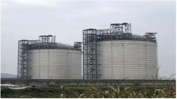 山西長(zhǎng)子項(xiàng)目2臺(tái)3萬(wàn)立方LNG 全容罐現(xiàn)場(chǎng)施工完成