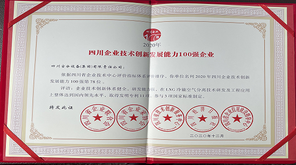我公司生產(chǎn)的“LNG冷能空分設(shè)備”——被評(píng)為“四川制造好產(chǎn)品”