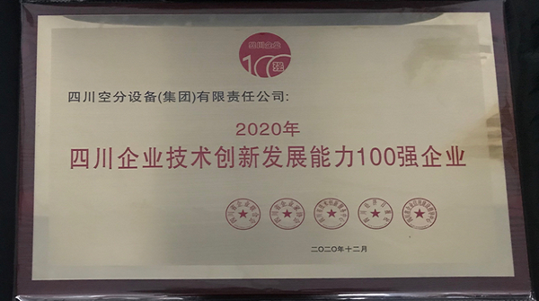 我公司榮獲2020年——“四川企業(yè)技術(shù)創(chuàng)新發(fā)展能力100強(qiáng)企業(yè)”