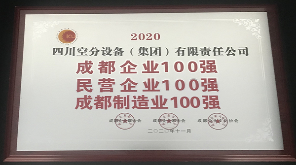 我公司榮獲2020年度“成都百?gòu)?qiáng)企業(yè)”