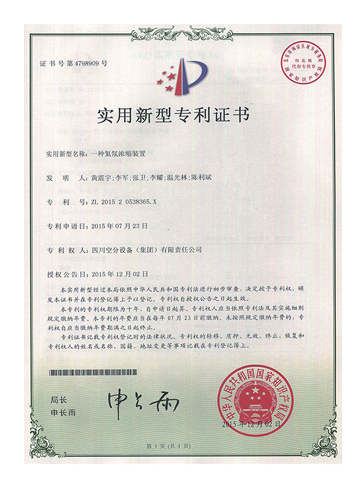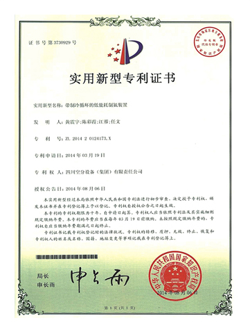 實用新型專利證書-帶制冷循環(huán)的低能耗制氮裝置