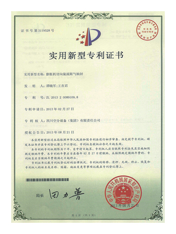 實用新型專利證書-透平膨脹機