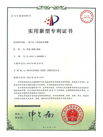 實用新型專利證書-一種LNG三壁金屬全容罐