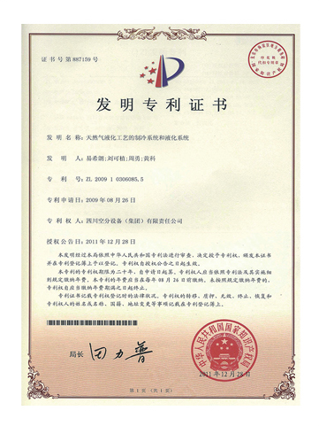 發(fā)明專利證書-一種高效利用液化天然氣冷能的空分系統(tǒng)