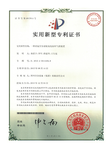 實用新型專利證書-一種帶氬空分獲取氦氖原料氣的裝置
