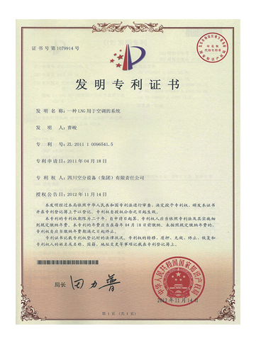 發(fā)明專利證書-一種LNG用于空調的系統(tǒng)