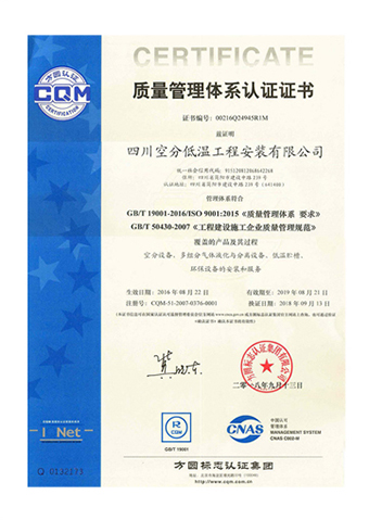質量管理體系認證證書