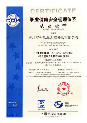 職業(yè)健康安全管理體系認證證書