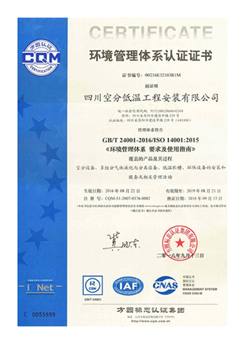 環(huán)境管理體系認證證書