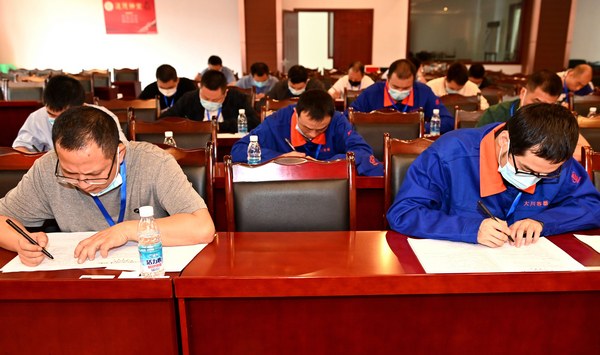 開幕式結(jié)束,經(jīng)過抽簽,大賽第一輪——理論考試緊接著在會議室進行。參賽選手嚴格按照競賽紀律認真參加了考試。