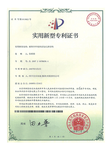 實(shí)用新型專利證書-被保冷件絕熱層包扎新結(jié)構(gòu)