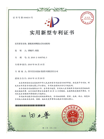 實(shí)用新型專利證書-膨脹機(jī)噴嘴齒式傳動機(jī)構(gòu)